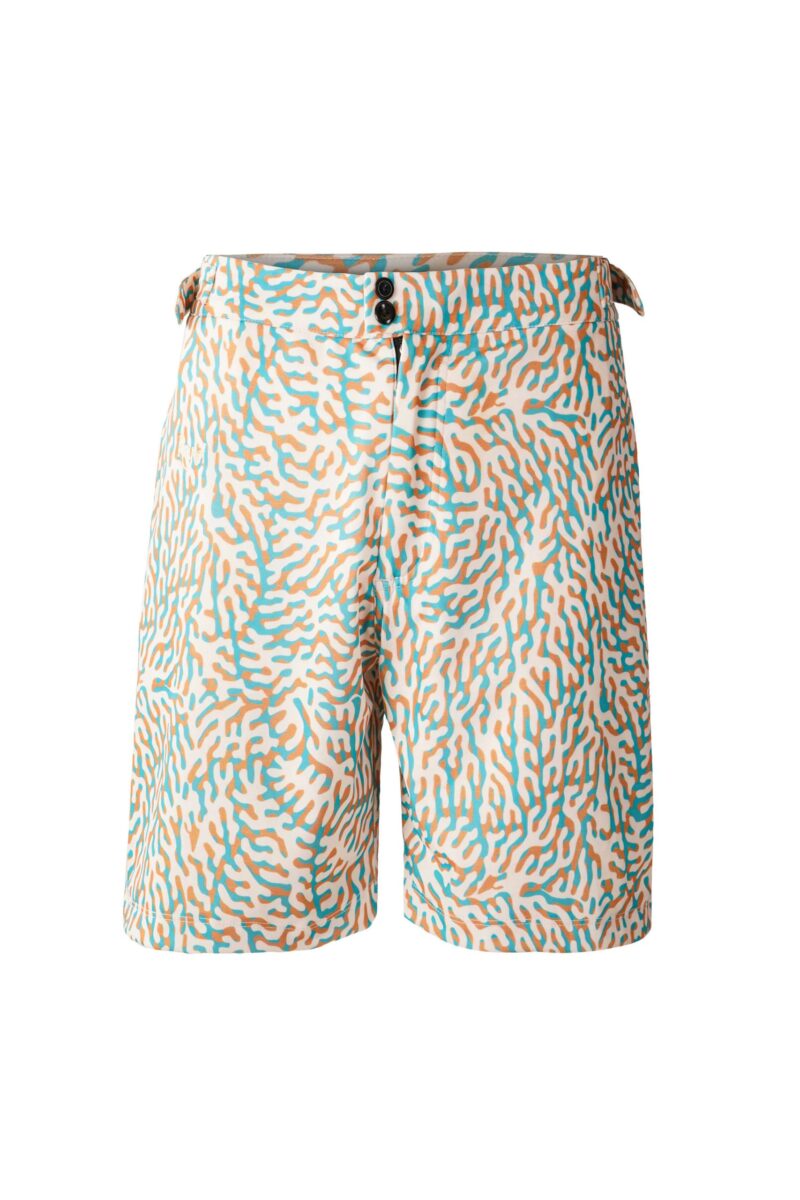The alluring ocean hues of our Aqua, featuring adjustable waist buckles for a perfect fit every time. Complex, coral-reef inspired patterns of aqua green, sandstone and cream, crawl over one another fusing to create an eye-catching, 3D print that commands attention to both the wearer and the coral reefs under threat.