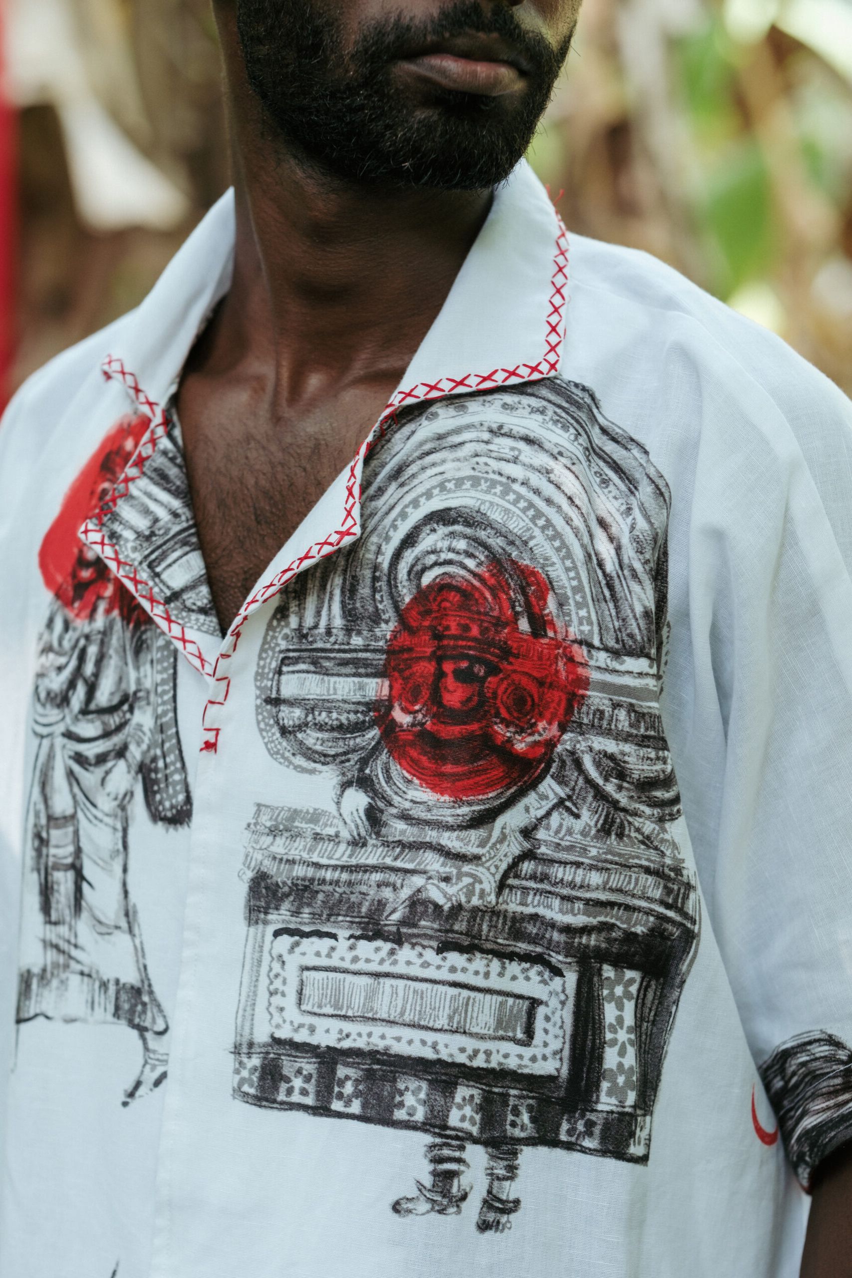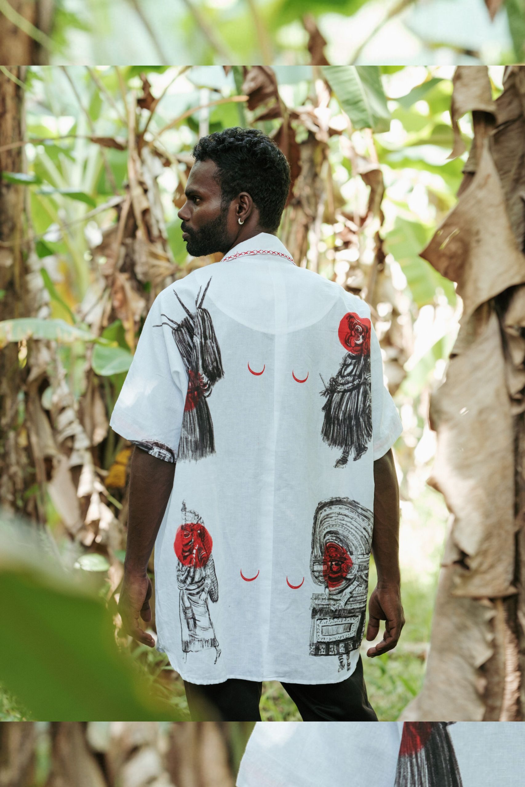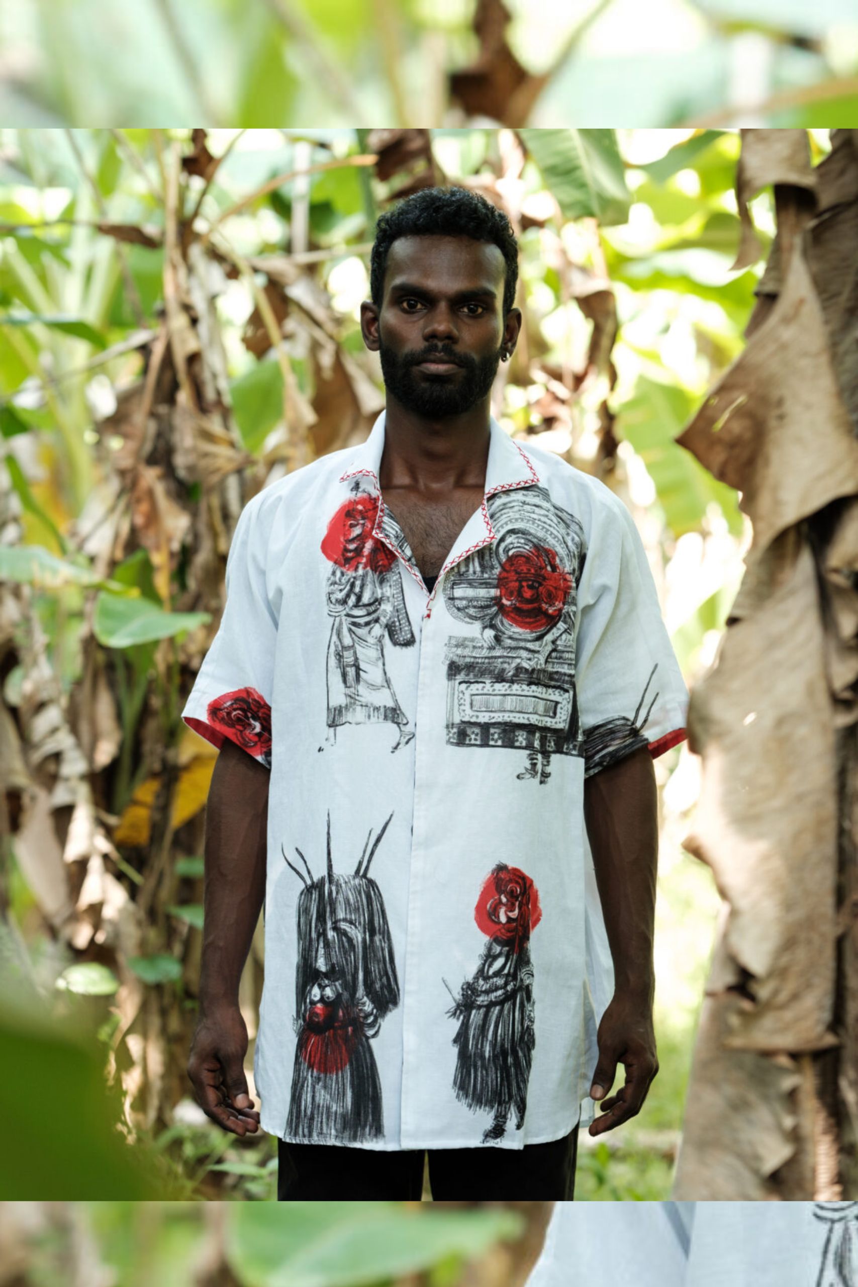 Rooted in the mystique of Teyyam, Bhagavati captures the essence of divine energy and ritualistic grace. This black-and-white print, accented with vivid red dots, mirrors the ancient forms of Teyyam. At the center, the moon shines a silent witness to nights of sacred rituals, illuminating the powerful presence of the divine. Just as the moon pulls the tides, Teyyam draws upon deep spiritual currents, connecting the earthly to the celestial. Bhagavati invites you to feel the rhythmic heartbeat of tradition, where every detail tells a tale under the moon’s ethereal glow.
