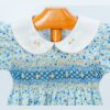 - Smocked puff sleeves and hand embroidered peter pan collar.