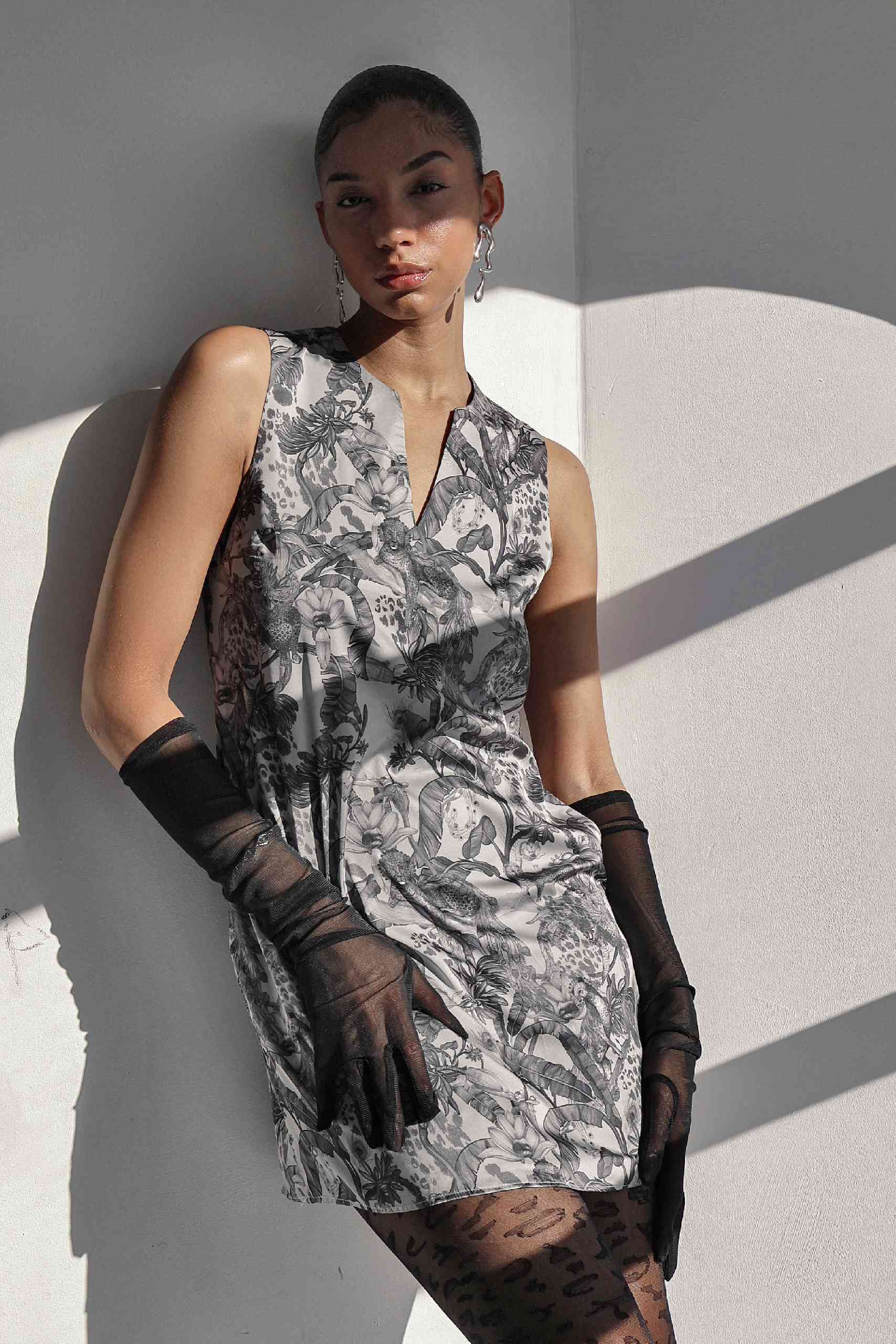 Monochrome Leopard Cashew Tree Shift Dress