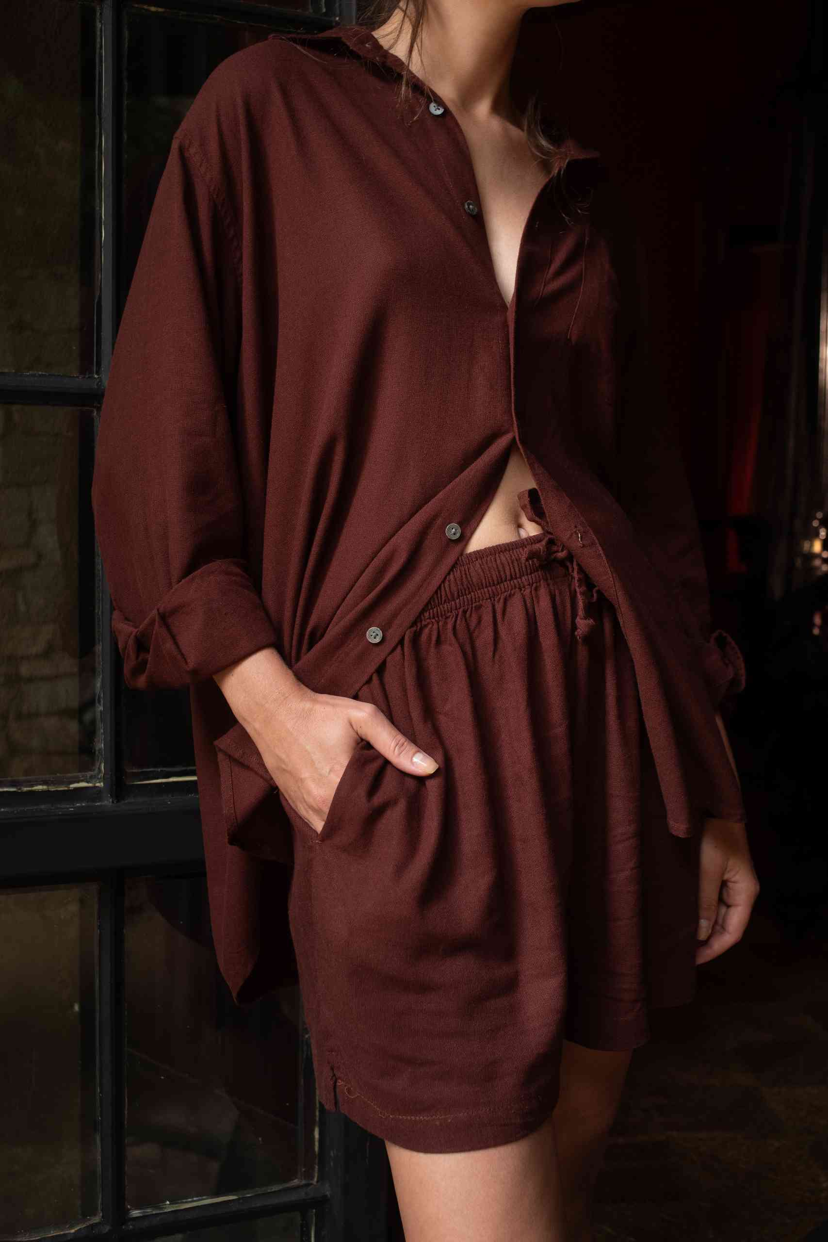 Linen Beach Shirt Maroon
