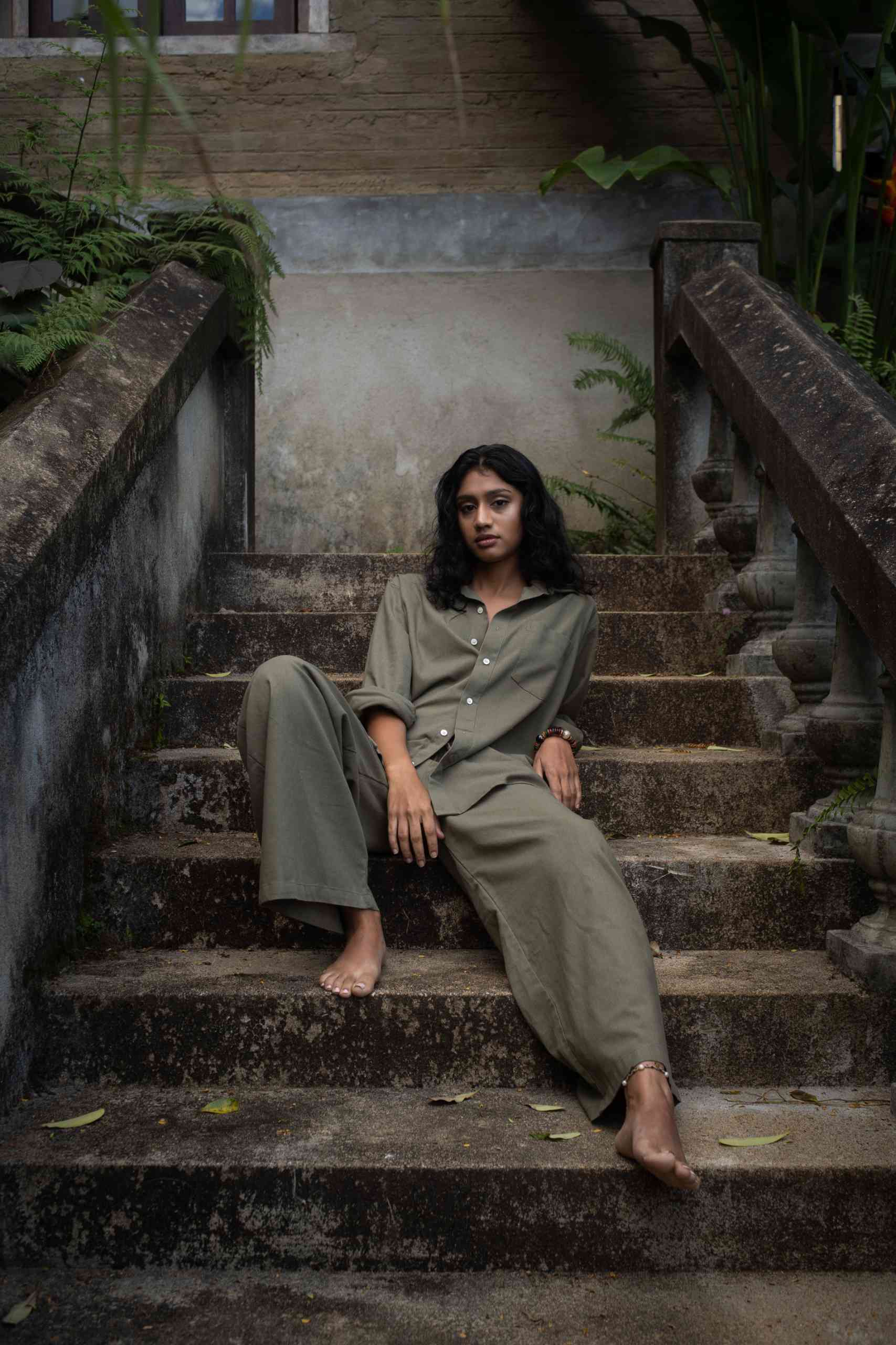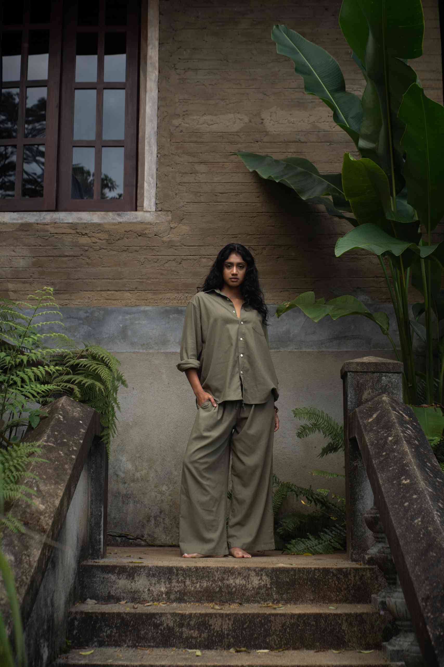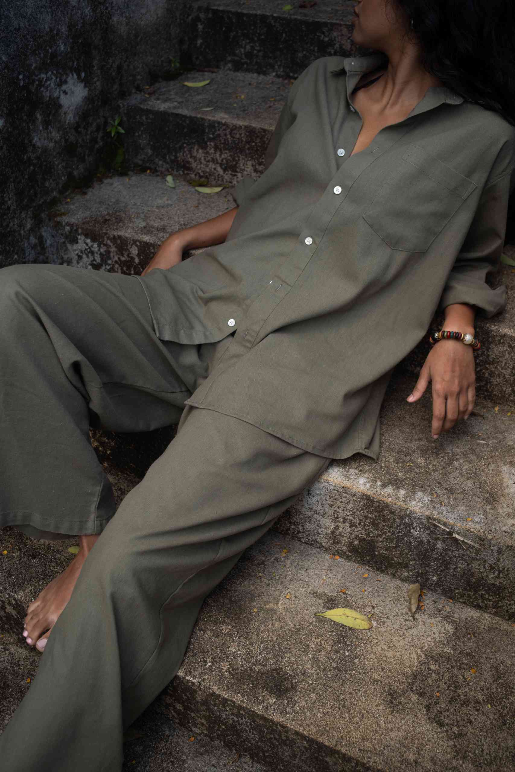 Crafted from breathable linen, these green trousers offer effortless comfort with a relaxed, natural style. The lightweight fabric keeps you cool, making them ideal for warm and humid days. Designed with a relaxed silhouette and an easy waistband, they provide a comfortable and flattering fit. The earthy green tone adds a fresh, versatile touch, perfect for both casual and elevated looks.