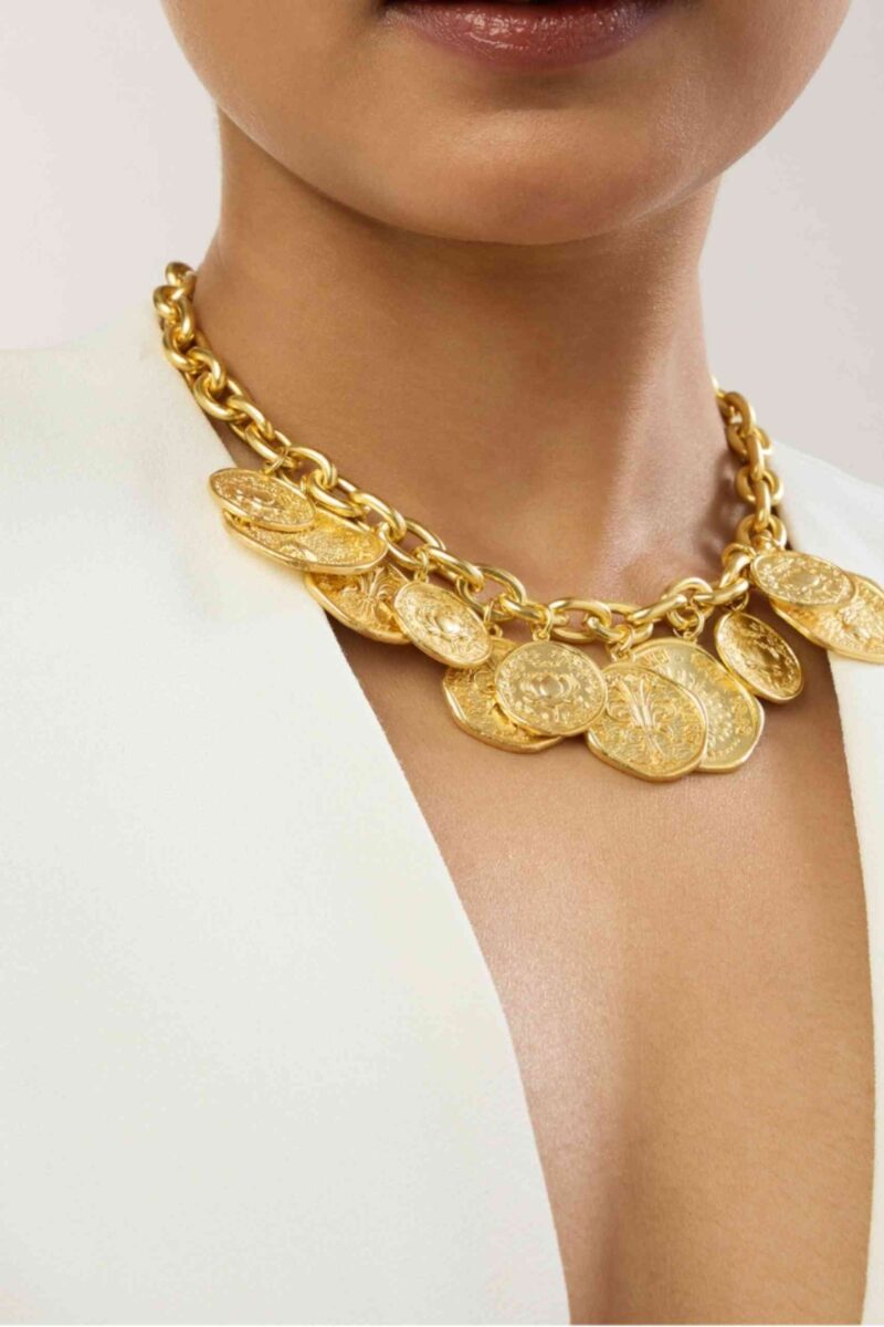 Channel the strength and grace of Indian heritage with our Shakti Necklace. The lotus coin symbolizes resilience and power, while the intricate peacock design adds elegance. Elevate your style and pay homage to the culture with this exclusive Mor Kamal Statement Chain.