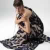 The upper body is fully lined for comfort and structure, while the side slit adds ease of movement and a subtle hint of sensuality. The bold, abstract print in indigo and ivory tones lends a contemporary yet timeless charm, perfect for statement occasions.