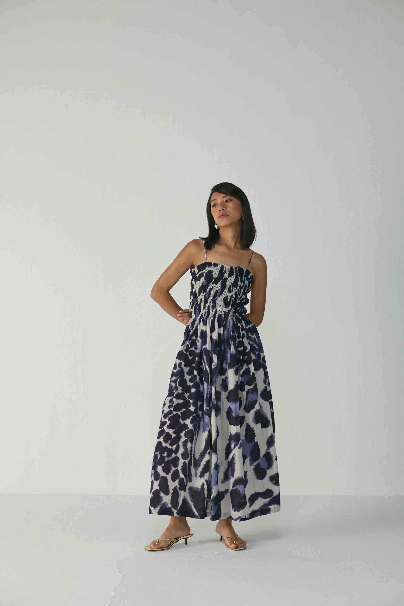 Effortlessly feminine and easy to wear, this strappy maxi dress is crafted in breathable poplin that drapes beautifully with a natural sheen. The bodice features elasticated ruching for a comfortable, flattering fit that accentuates the silhouette while allowing ease of movement.