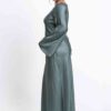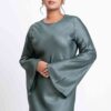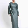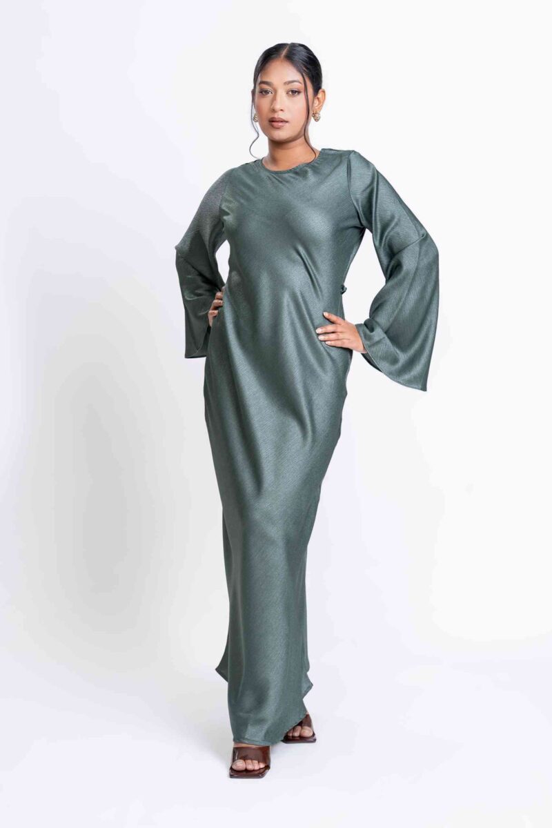 A timeless modest dress crafted in softly shimmering fabric with a graceful bias-cut drape. Designed with a refined neckline and full-length silhouette, it offers elegant coverage and effortless movement—perfect for special occasions or elevated daywear.
