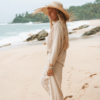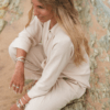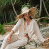The Suhasna shirt is surely the most classic but also the most elegant, for work or for going out, tied above the waist, day or night, it will follow you wherever you go. 3/4 sleeves, coconut buttons, lightweight natural linen available in 4 colors.