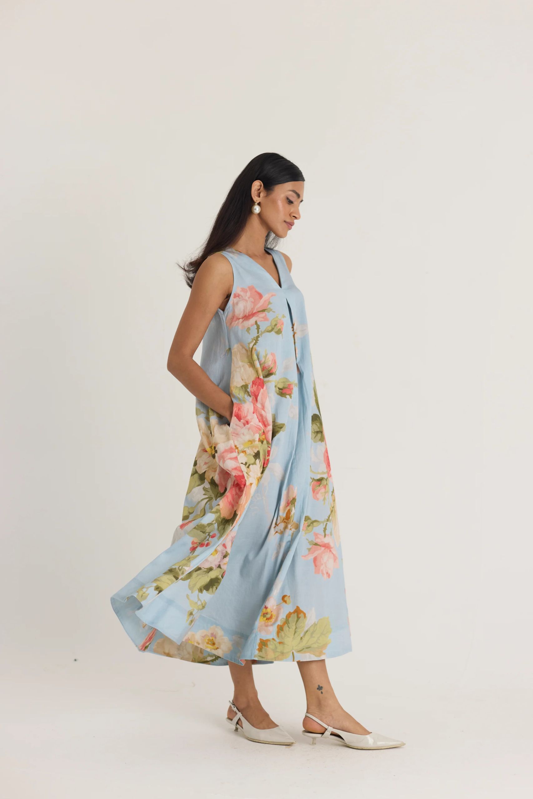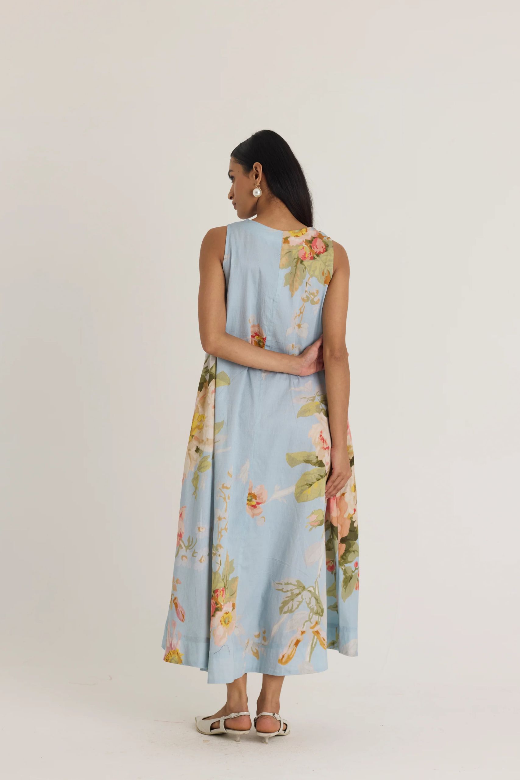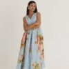 Flow into elegance with this sky blue sleeveless maxi dress, featuring a soft floral print that embodies grace and effortless charm. Designed for the modern woman who values both style and comfort, this flowy silhouette is perfect for summer soirées, brunches, and vacations.