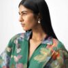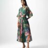 This elegant midi dress is crafted in premium poplin fabric, featuring a bold painterly floral print that merges contemporary design with timeless femininity. The dress showcases a flattering V-neckline with a structured collar and wide half sleeves that add ease and sophistication.
